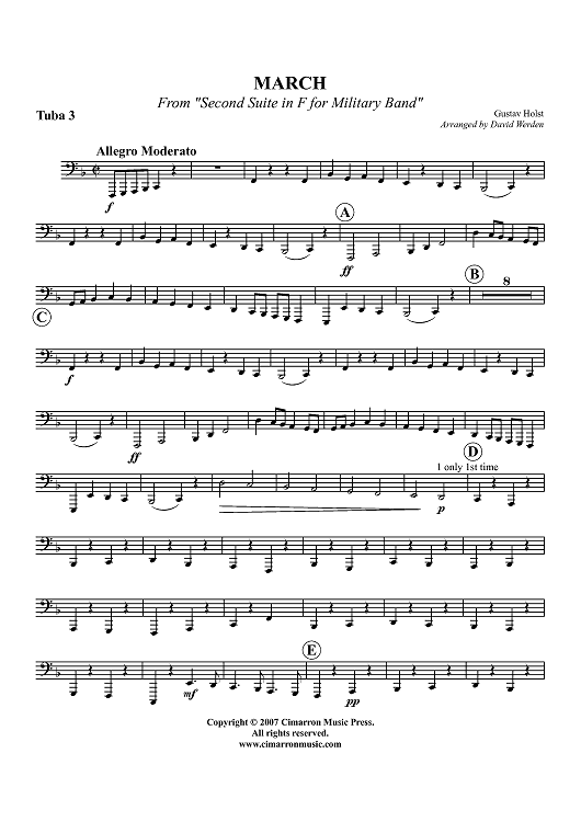Digital Sheet Music for March from "Second Suite in F for Military Band" - Tuba 3 by David Werden, Gustav Holst scored for Tuba Ensemble; id:361116