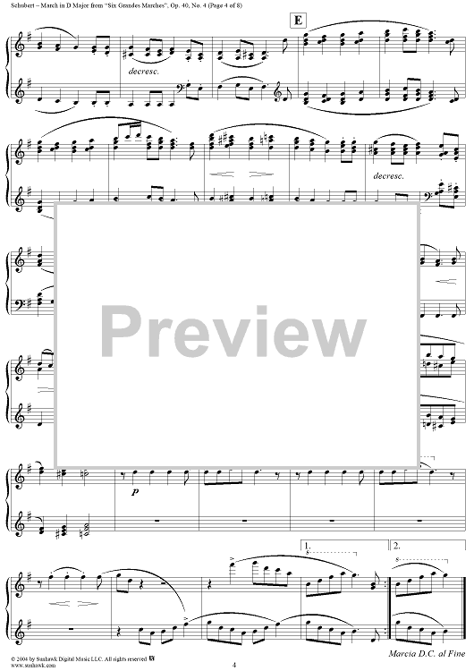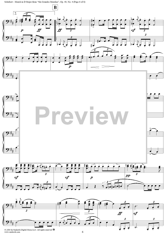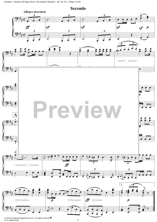 Digital Sheet Music for March in D Major, No. 4 from "Six Grandes Marches", Op. 40 by Franz Schubert scored for 1 Piano, 4 Hands; id:298043