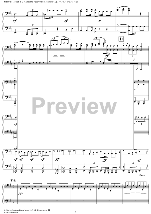 "March in D Major, No. 4 from "Six Grandes Marches", Op. 40" Sheet Music by Franz Schubert