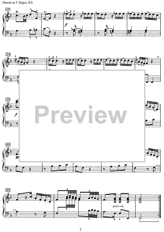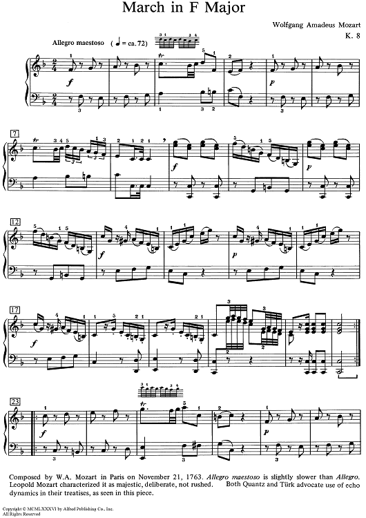 Digital Sheet Music for March in F Major [K. 8] by Wolfgang Amadeus Mozart scored for Piano Solo; id:506913