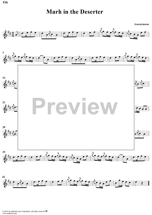 Digital Sheet Music for March in the Deserter by Unknown Writer scored for Fife; id:277769