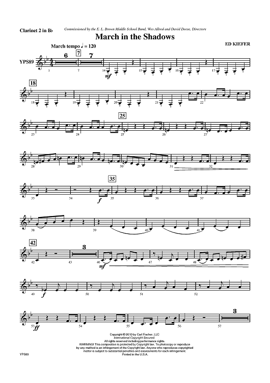 "March in the Shadows - Clarinet 2 in B-flat" Sheet Music by Ed Kiefer