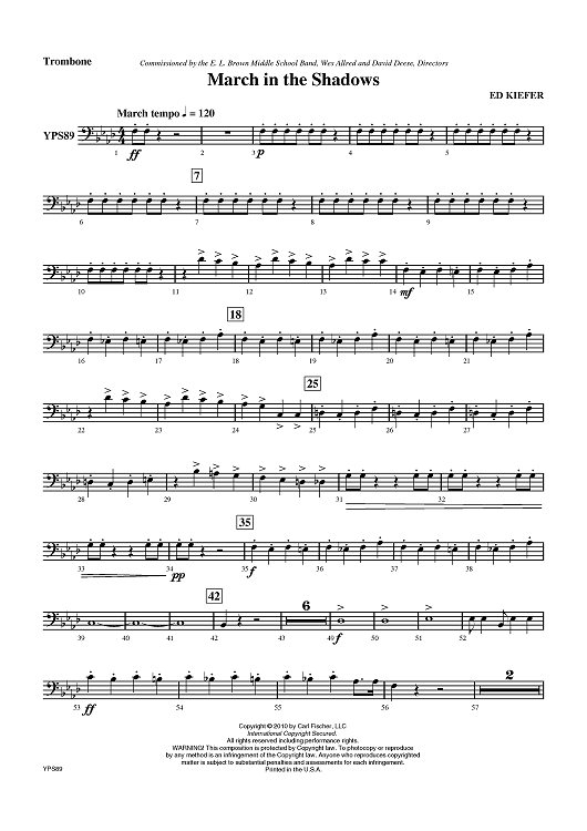 "March in the Shadows - Trombone" Sheet Music by Ed Kiefer