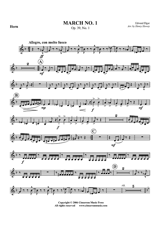 Digital Sheet Music for March No. 1, Op. 39, No. 1 - Horn by Henry Howey, Edward Elgar scored for Brass Quintet; id:320719