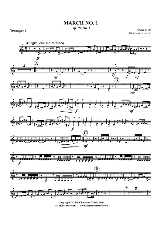 Digital Sheet Music for March No. 1, Op. 39, No. 1 - Trumpet 2 by Henry Howey, Edward Elgar scored for Brass Quintet; id:320718
