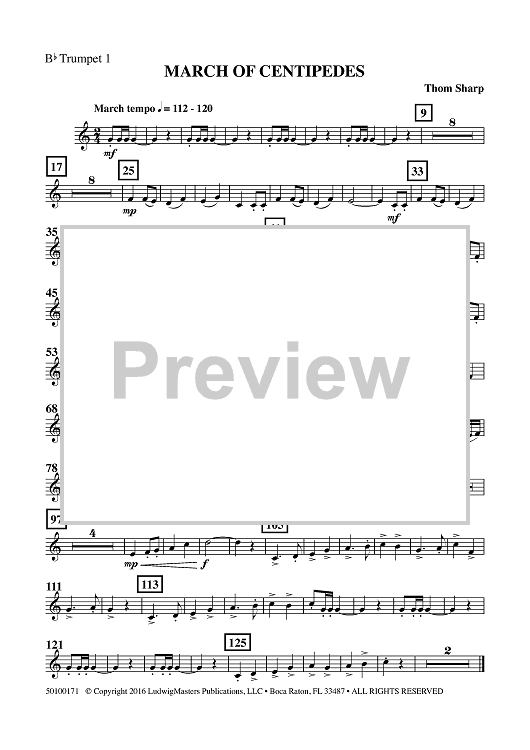Digital Sheet Music for March of Centipedes - Bb Trumpet 1 by Thom Sharp scored for Concert Band; id:461409
