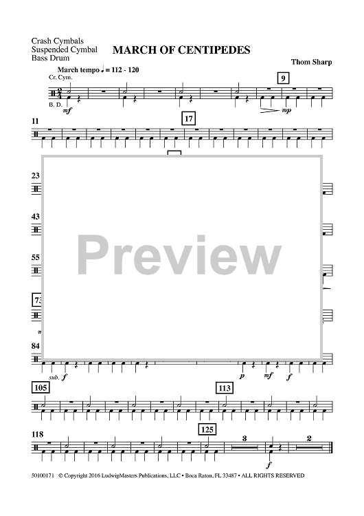 Digital Sheet Music for March of Centipedes - Crash Cymbals / Suspended Cymbal / Bass Drum by Thom Sharp scored for Concert Band; id:461416