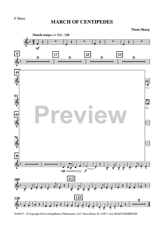 Digital Sheet Music for March of Centipedes - Horn in F by Thom Sharp scored for Concert Band; id:461411