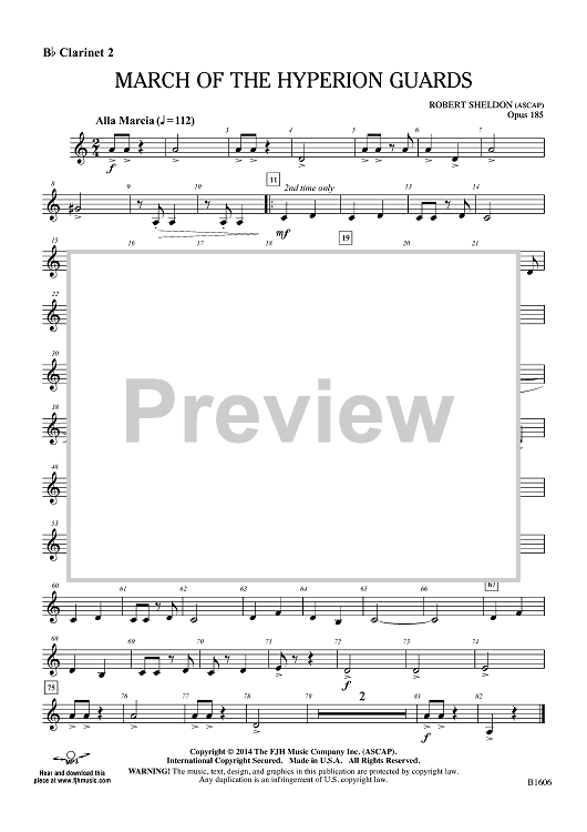 Digital Sheet Music for March of the Hyperion Guards - Bb Clarinet 2 by Robert Sheldon scored for Concert Band; id:447713