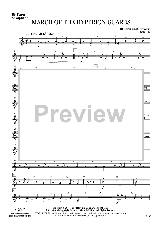Digital Sheet Music for March of the Hyperion Guards - Bb Tenor Sax by Robert Sheldon scored for Concert Band; id:447717