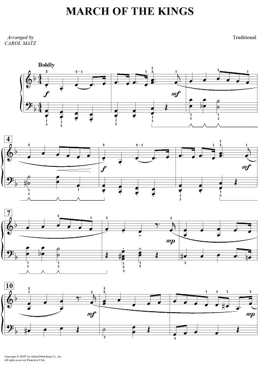 Digital Sheet Music for March of the Kings by Carol Matz, Traditional scored for Piano; id:453954
