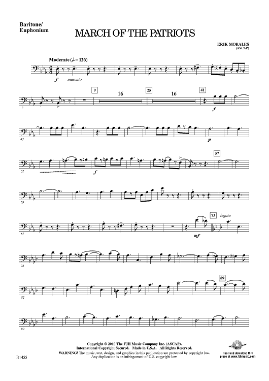 Digital Sheet Music for March of the Patriots - Baritone/Euphonium by Erik Morales scored for Concert Band; id:415856