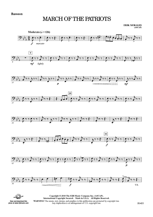 Digital Sheet Music for March of the Patriots - Bassoon by Erik Morales scored for Concert Band; id:415839