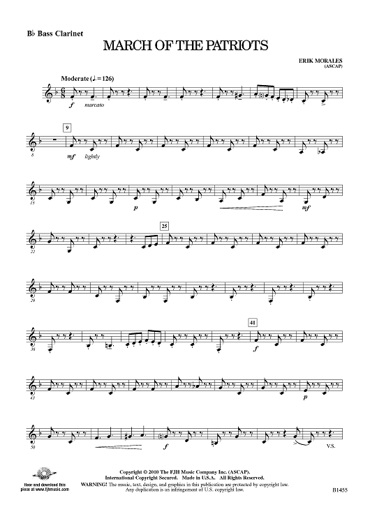 Digital Sheet Music for March of the Patriots - Bb Bass Clarinet by Erik Morales scored for Concert Band; id:415843