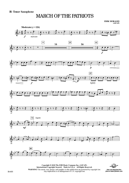 Digital Sheet Music for March of the Patriots - Bb Tenor Sax by Erik Morales scored for Concert Band; id:415846