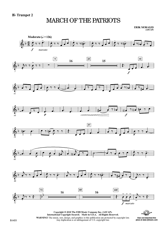 Digital Sheet Music for March of the Patriots - Bb Trumpet 2 by Erik Morales scored for Concert Band; id:415849