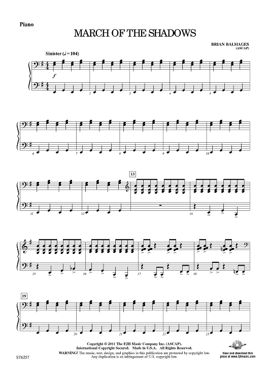 "March of the Shadows - Piano" Sheet Music by Brian Balmages