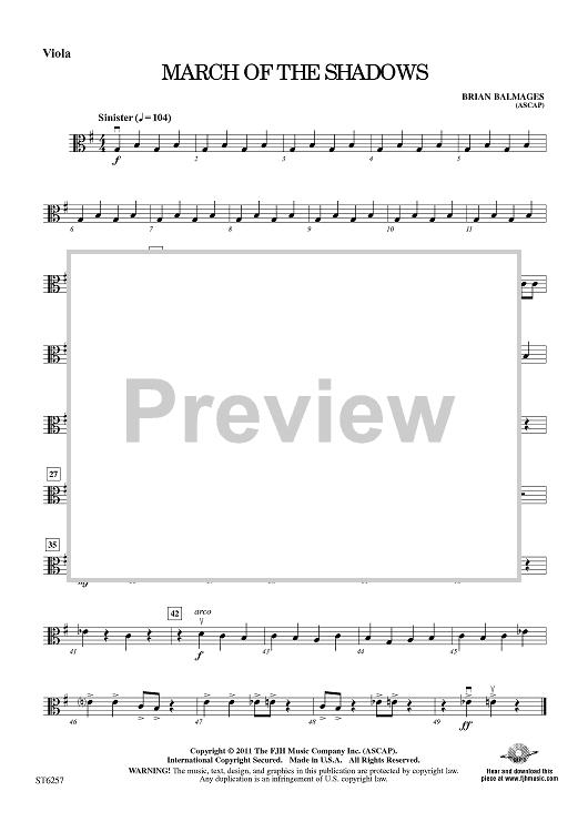 "March of the Shadows - Viola" Sheet Music by Brian Balmages