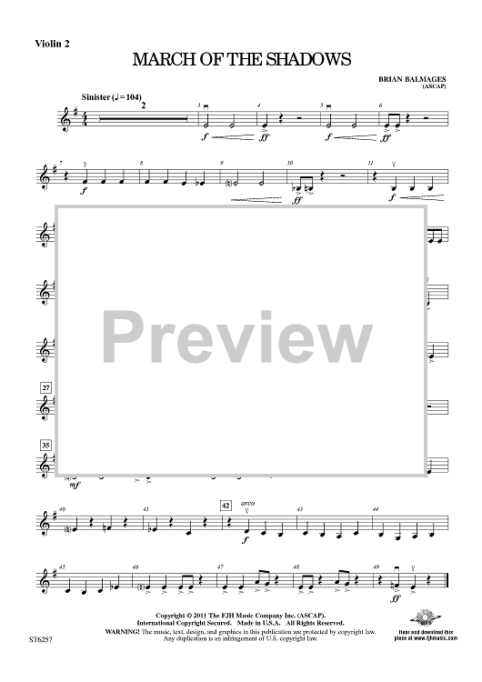 Digital Sheet Music for March of the Shadows - Violin 2 by Brian Balmages scored for String Orchestra; id:421751