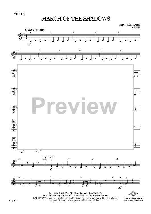 Digital Sheet Music for March of the Shadows - Violin 3 (Viola T.C.) by Brian Balmages scored for String Orchestra; id:421752