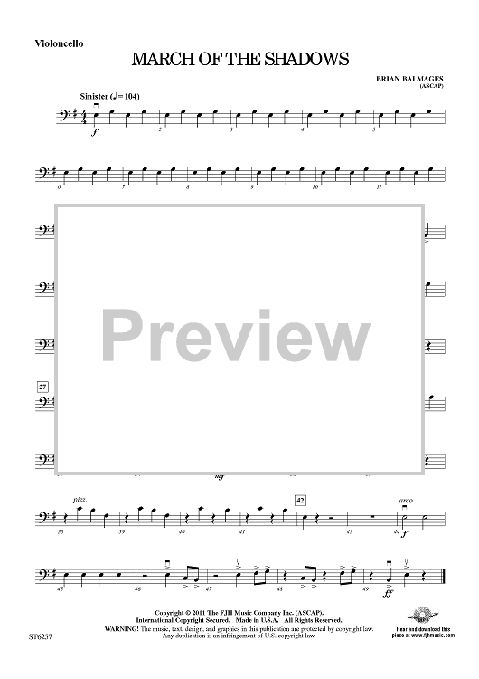 Digital Sheet Music for March of the Shadows - Violoncello by Brian Balmages scored for String Orchestra; id:421754