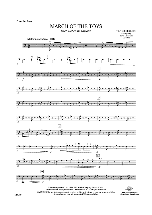Digital Sheet Music for March of the Toys - Double Bass by Bob Lipton, Victor Herbert scored for String Orchestra; id:436942