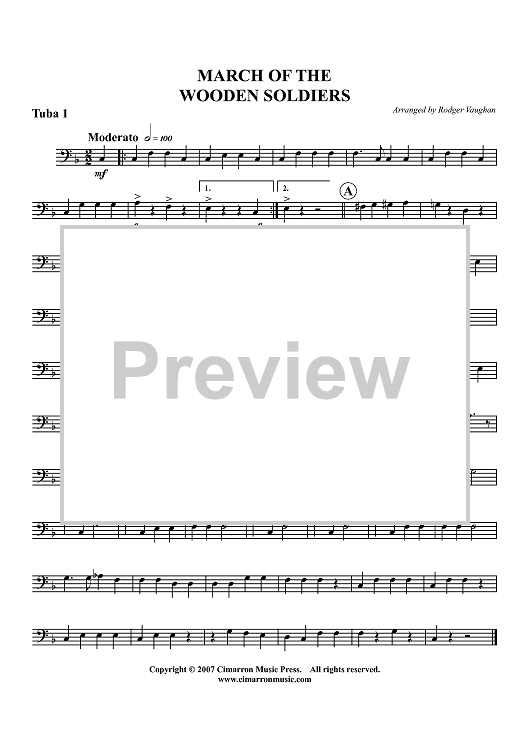 Digital Sheet Music for March of the Wooden Soldiers - Tuba 1 by Rodger Vaughan, Traditional scored for Tuba Quartet; id:413576