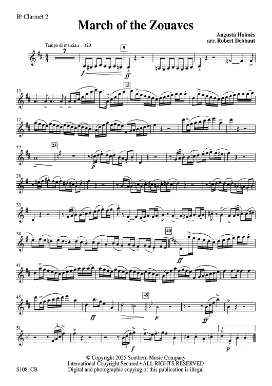 Digital Sheet Music for March of the Zouaves - Bb Clarinet 2 by Augusta Holmès, Robert Debbaut scored for Symphonic Band; id:507937