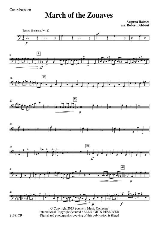 Digital Sheet Music for March of the Zouaves - Contrabassoon by Augusta Holmès, Robert Debbaut scored for Symphonic Band; id:507942