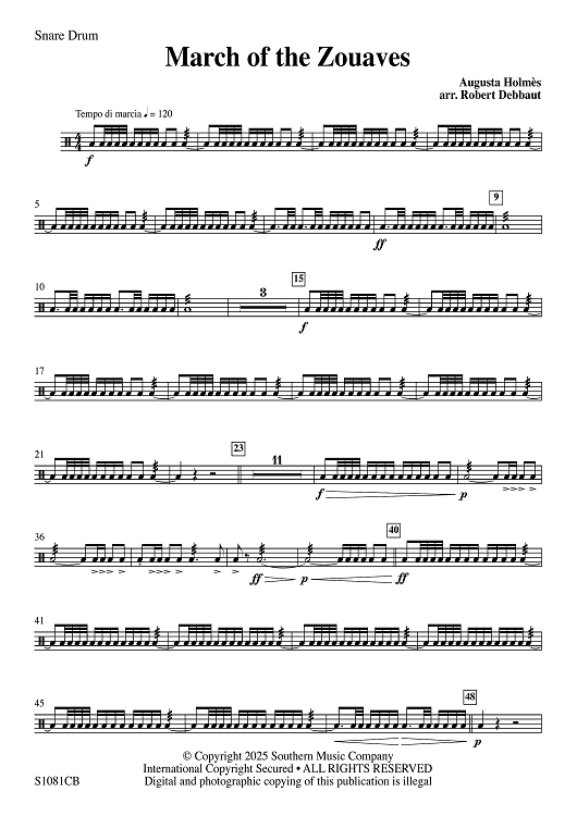 Digital Sheet Music for March of the Zouaves - Snare Drum by Augusta Holmès, Robert Debbaut scored for Symphonic Band; id:507958
