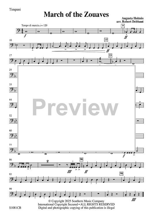 Digital Sheet Music for March of the Zouaves - Timpani by Augusta Holmès, Robert Debbaut scored for Symphonic Band; id:507957
