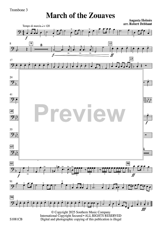 Digital Sheet Music for March of the Zouaves - Trombone 3 by Augusta Holmès, Robert Debbaut scored for Symphonic Band; id:507953