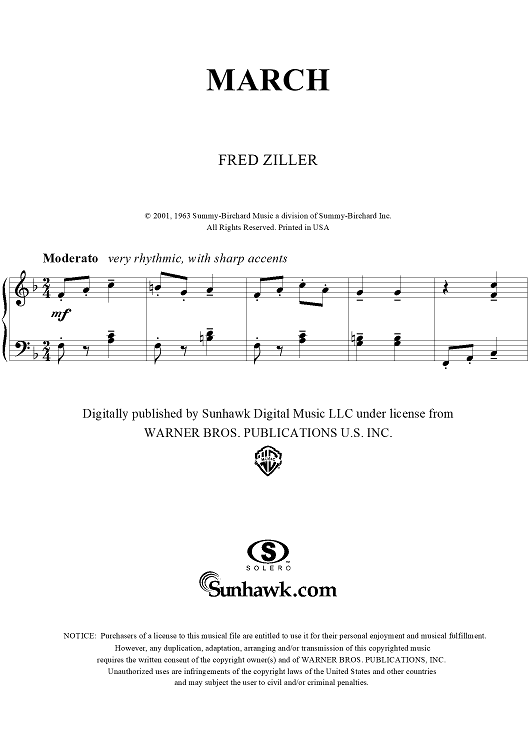 "March" Sheet Music by Fred Ziller