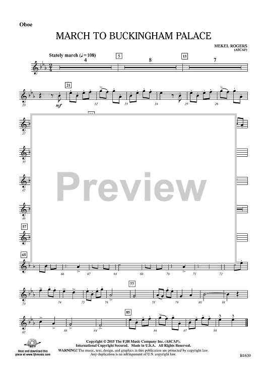 "March to Buckingham Palace - Oboe" Sheet Music by Mekel Rogers