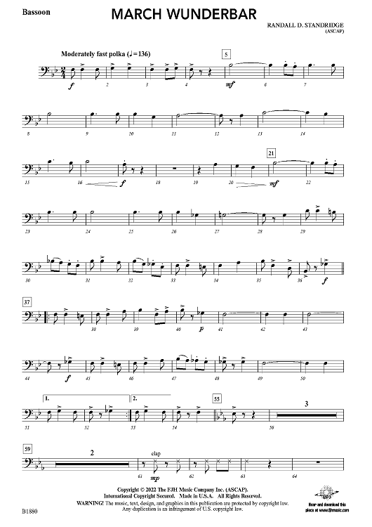 "March Wunderbar - Bassoon" Sheet Music by Randall D. Standridge