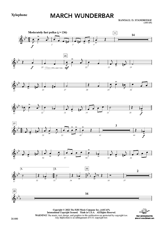"March Wunderbar - Xylophone" Sheet Music by Randall D. Standridge