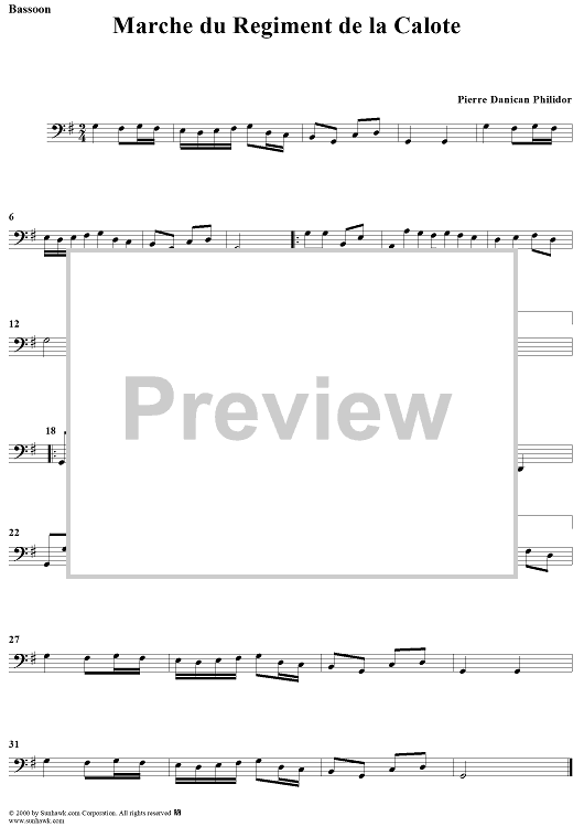 "Marche du Regiment de la Calote - Bassoon" Sheet Music by Pierre Danican Philidor