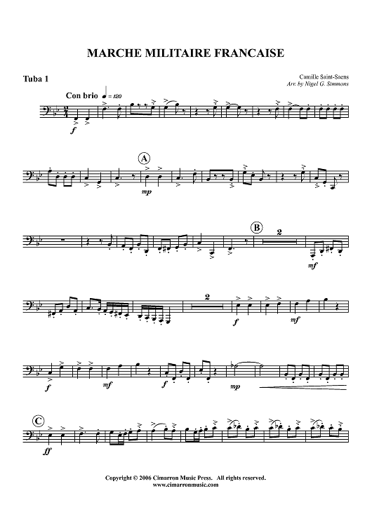 Digital Sheet Music for Marche Militaire Francaise - Tuba 1 by Camille Saint-Saëns, Nigel Simmons scored for Tuba Quartet; id:360252
