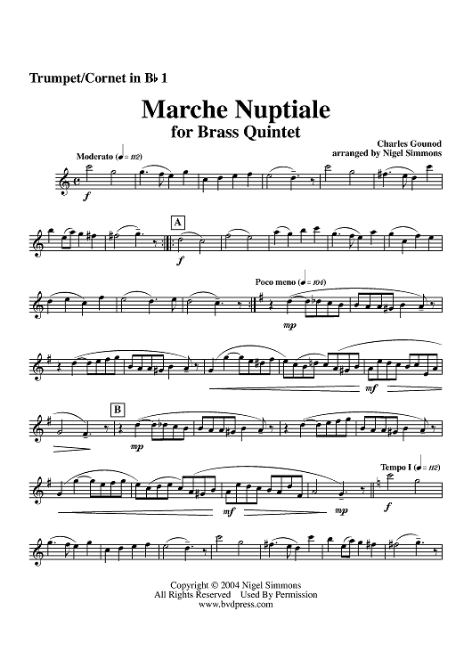 Digital Sheet Music for Marche Nuptiale - Trumpet 1 by Charles Gounod, Nigel Simmons scored for Brass Quintet; id:311779