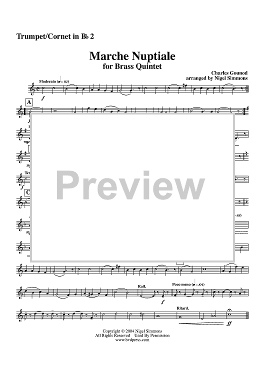 Digital Sheet Music for Marche Nuptiale - Trumpet 2 by Charles Gounod, Nigel Simmons scored for Brass Quintet; id:311780