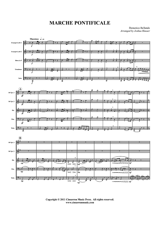 Digital Sheet Music for Marche Pontificale - Score by Joshua Hauser, Domenico Bellando scored for Brass Quintet; id:425128