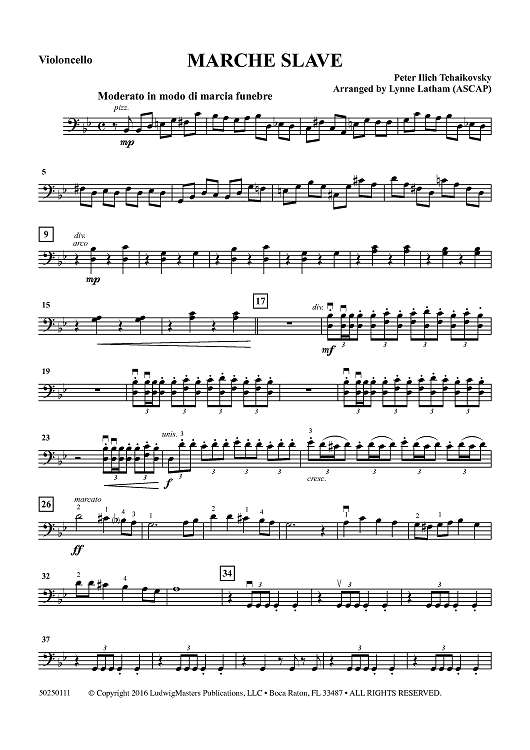 Digital Sheet Music for Marche Slave - Violoncello by Peter Ilyich Tchaikovsky, Lynne Latham scored for String Orchestra; id:462069