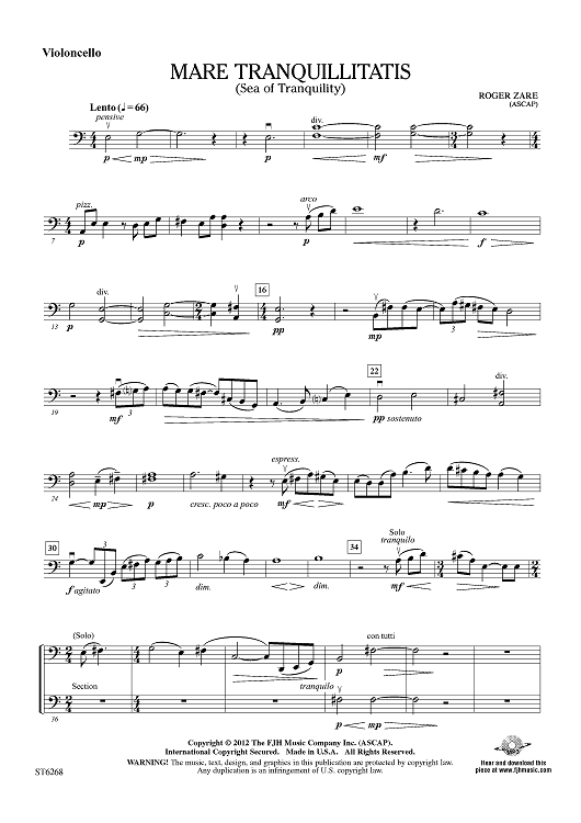 "Mare Tranquillitatis (Sea Of Tranquility) - Violoncello" Sheet Music by Roger Zare