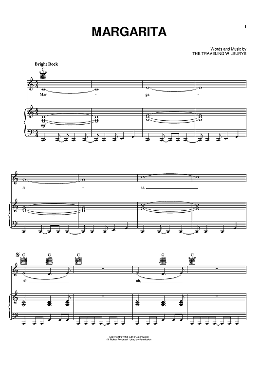 Digital Sheet Music for Margarita by Roy Orbison, Bob Dylan, George Harrison, Tom Petty, Jeff Lynne, The Traveling Wilburys scored for Piano/Vocal/Chords; id:402446