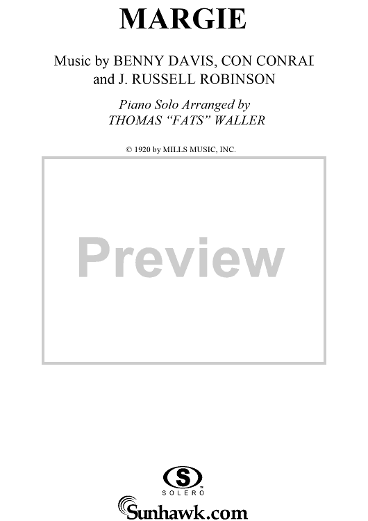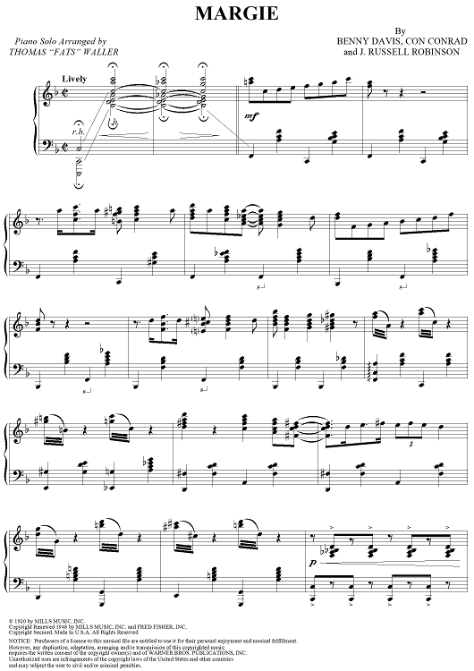 Digital Sheet Music for Margie by Fats Waller, J. Russel Robinson, Benny Davis, Con Conrad scored for Piano Solo; id:116363