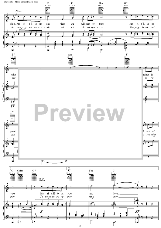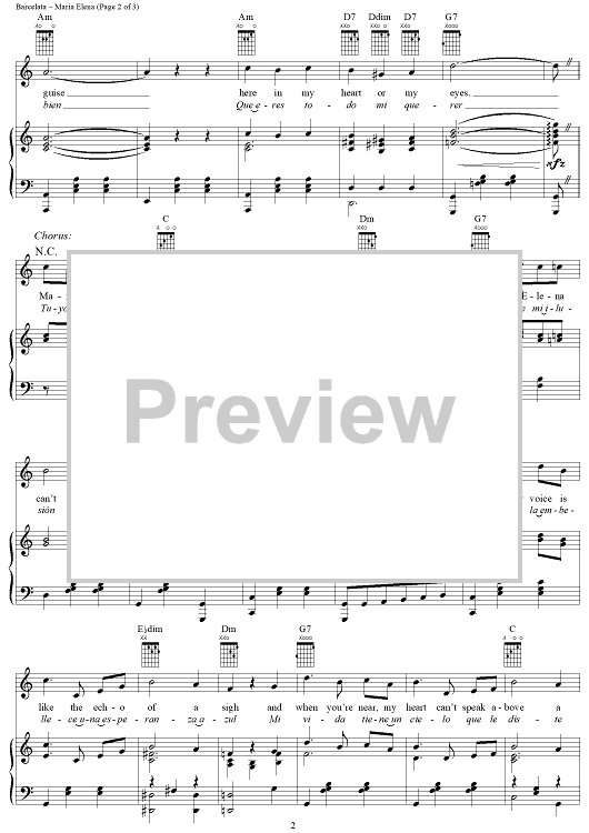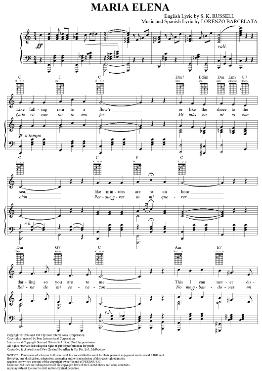 Digital Sheet Music for Maria Elena by Lorenzo Barcelata scored for Piano/Vocal/Chords; id:318362