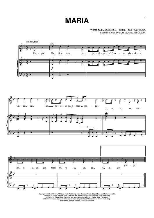 Digital Sheet Music for Maria by Robi Rosa, Ricky Martin, K. C. Porter, Luis Gomez-Escolar scored for Piano/Vocal/Chords; id:373013