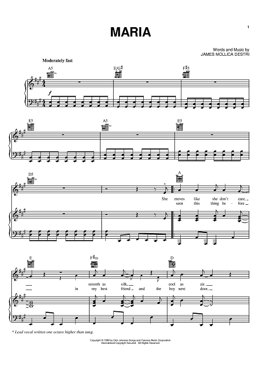 Digital Sheet Music for Maria by Blondie, Jimmy Destri scored for Piano/Vocal/Chords; id:380392