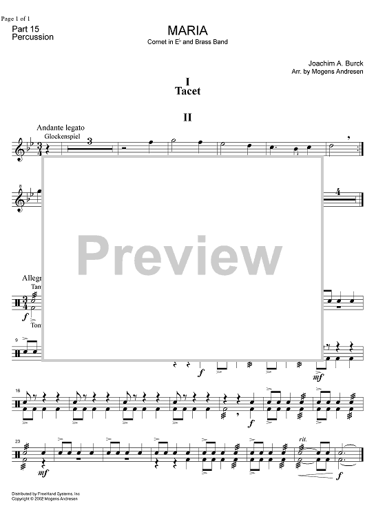 Digital Sheet Music for Maria - Percussion by Mogens Andresen, Joachim Burck scored for E-flat Cornet/Brass Band; id:331810