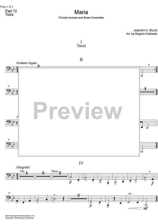 Digital Sheet Music for Maria - Tuba by Mogens Andresen, Joachim Burck scored for Piccolo Trumpet/Brass Ensemble; id:331429